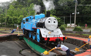 千頭駅の転車台で、トーマスがくるりと向きを変更。転車台は新金谷駅にもあり、どちらも見学可