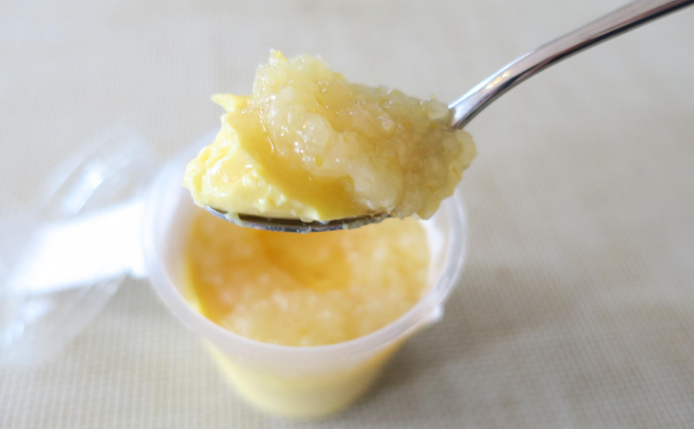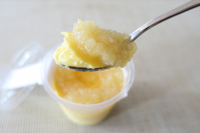 一般的な「レモン味のゼリー」とは異なり、酸味の他にレモンらしい苦味もしっかりと感じられ、予想以上に大人の味わいです。蜂蜜の甘みとのバランスが取れているので、さっぱりと味わえます。