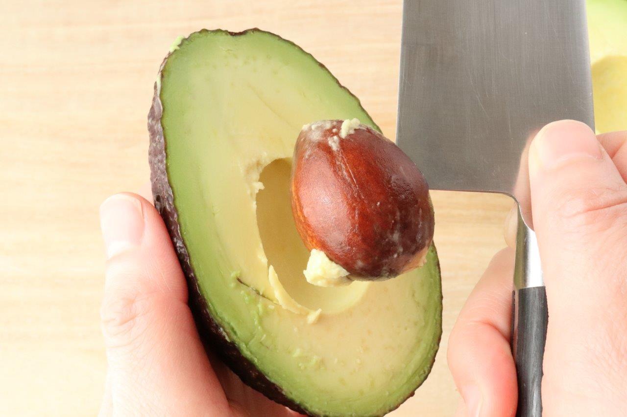 またアボカドが硬くて種を取りづらい場合は、スプーンでくり抜くと簡単に取れます。