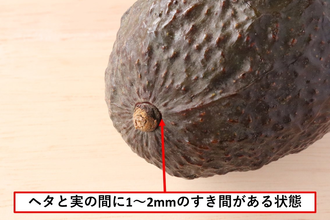 ヘタと実のすき間は、以下の写真のように1~2mmほど空いているものが食べごろです。
