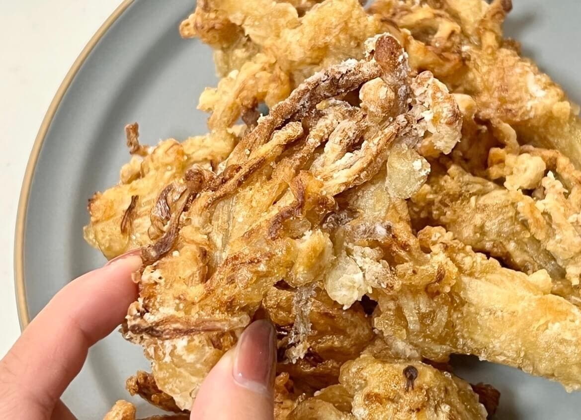 片面2分ほど揚げ、えのきがカリッカリの竜田揚げのような状態になったら完成です。