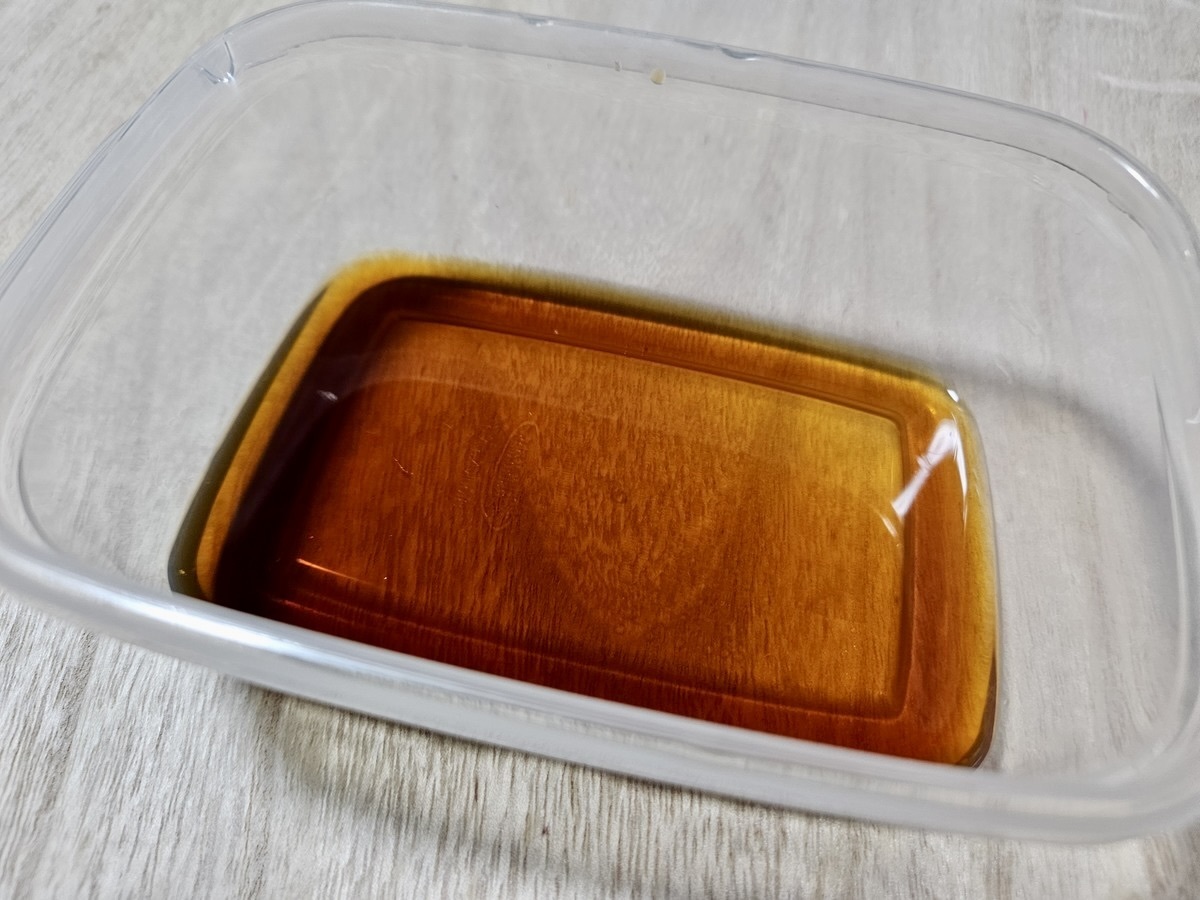 この漬け汁をフライパンに移して水を大さじ3ほど加えました。水を同量もしくは多く入れるとつゆになってしまうと思い水はあえて少なめにしました。