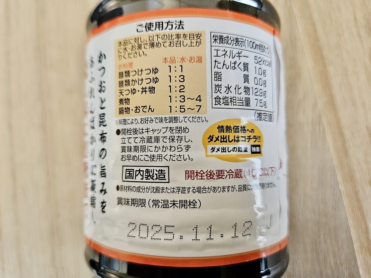パッケージに「めんつゆ」と大きく記載されているのも分かりやすいです。