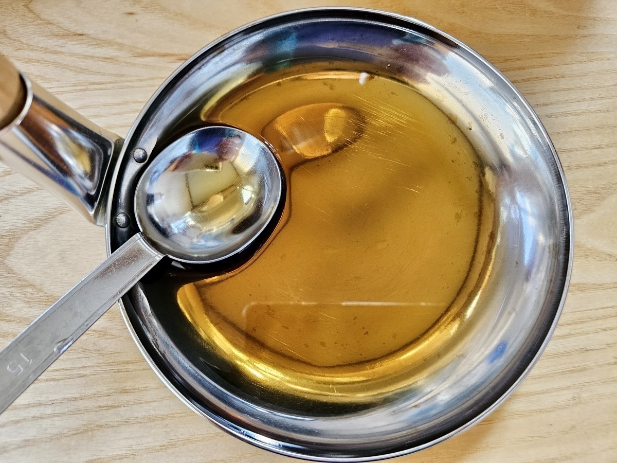 水を300ccほど加えれば、かけつゆ約400cc。これを火にかけます。