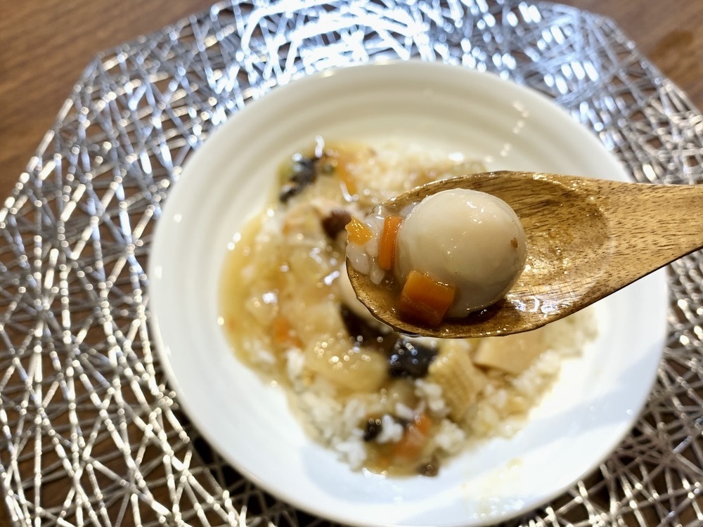 うずらの卵も1個ではなく2個入っています!卵の味は濃厚でご飯との相性も良く、食べごたえが出て非常に美味しいです!