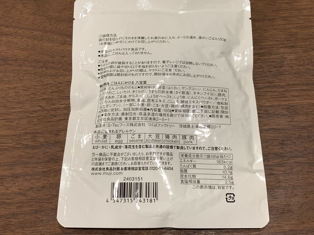 無印良品の「ごはんにかける八宝菜」がこちらです。