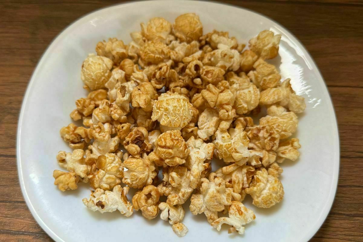 食感が異なる2種類のポップコーンを混ぜ合わせ、りんごの甘酸っぱい風味と、シナモンがほのかに香る、珍しい風味のポップコーンです。