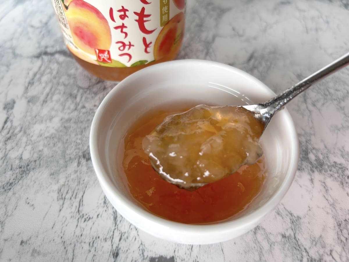 甘さはしっかりありますが、はちみつなのでジャムのようなしつこさはなく、ももの果実感もあり、思ったよりもさっぱりと食べられます。