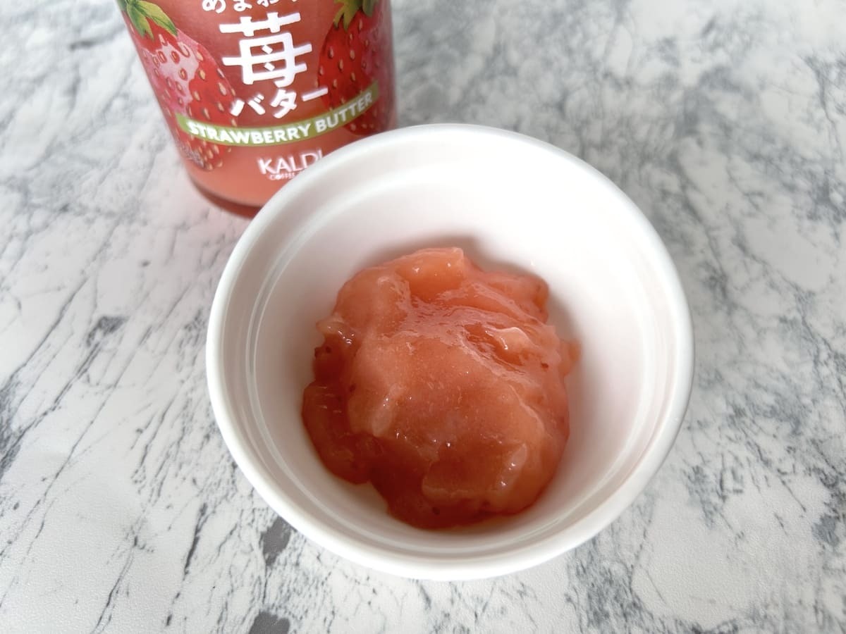 濃厚ないちごの風味はしっかり感じられ、バターが入ることでいちごジャムよりも、ねっとりとし、クリーミーさとコクが加わっています。