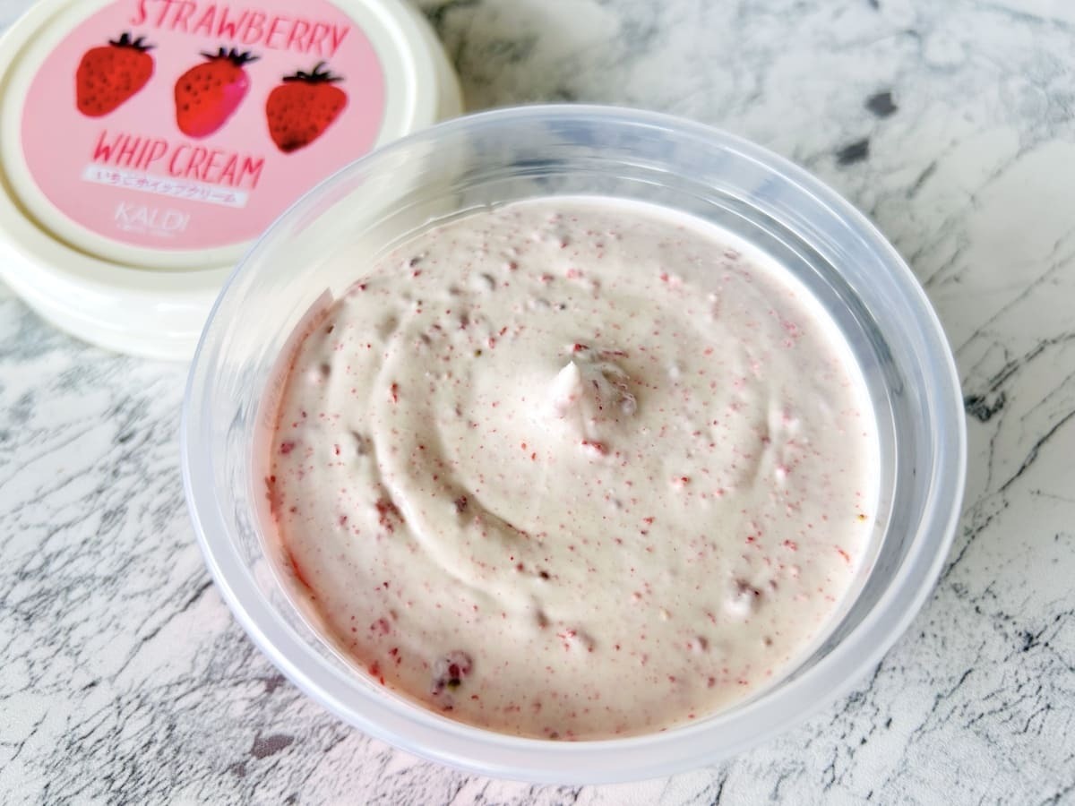 フレッシュ感のあるいちごを求めると少し違いますが、キメの細かいホイップとドライいちごの風味は相性◎