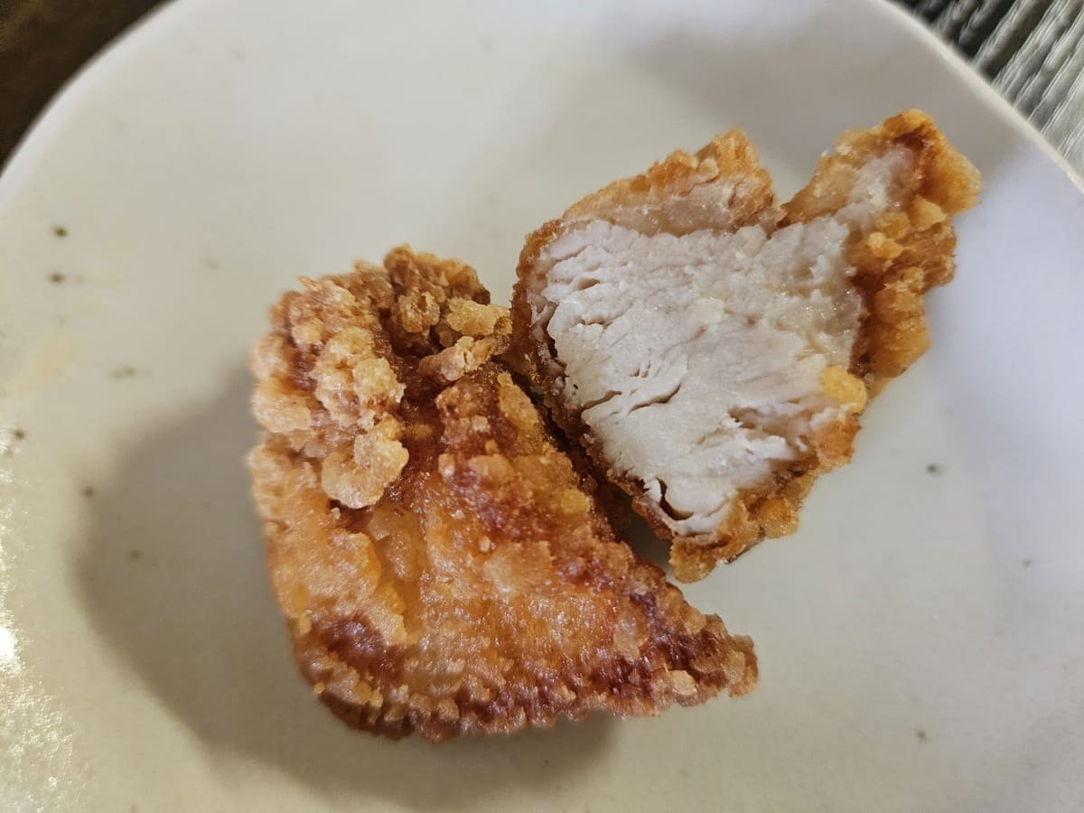 衣はパリッと軽い食感で、想像していたよりも塩見がしっかりとついた味わいです。しょうゆの風味も感じられるので、唐揚げ感がしっかりあります
