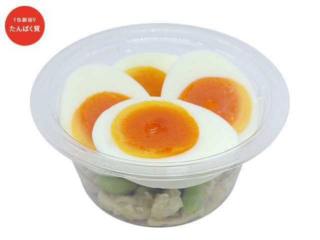 ゆで卵・蒸し鶏・枝豆とタンパク質が豊富な食材を組み合わせた一品。