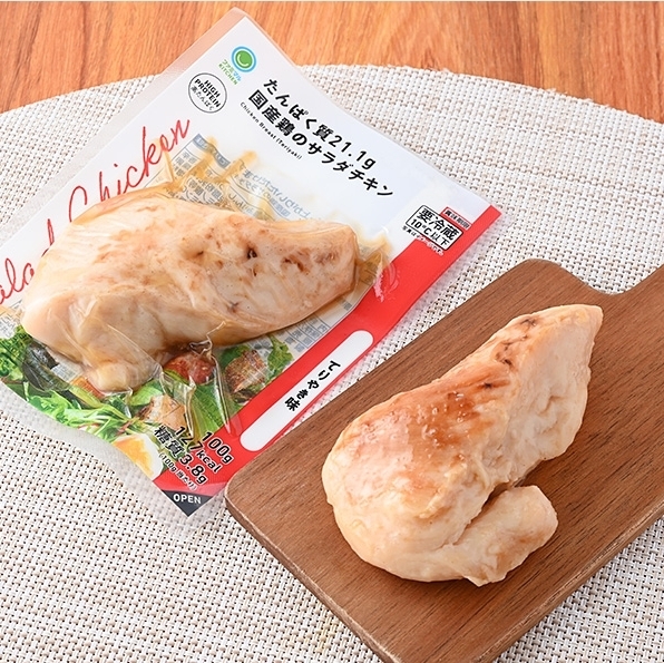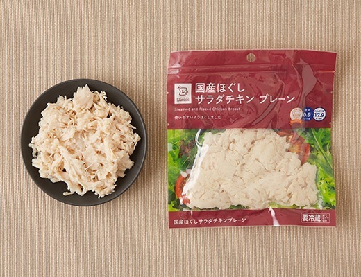 炭火焼きされた鶏のもも肉を使用したサラダチキン。