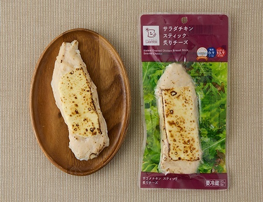 チキンにチーズを乗せ、こんがりと炙られたサラダチキンスティックです。