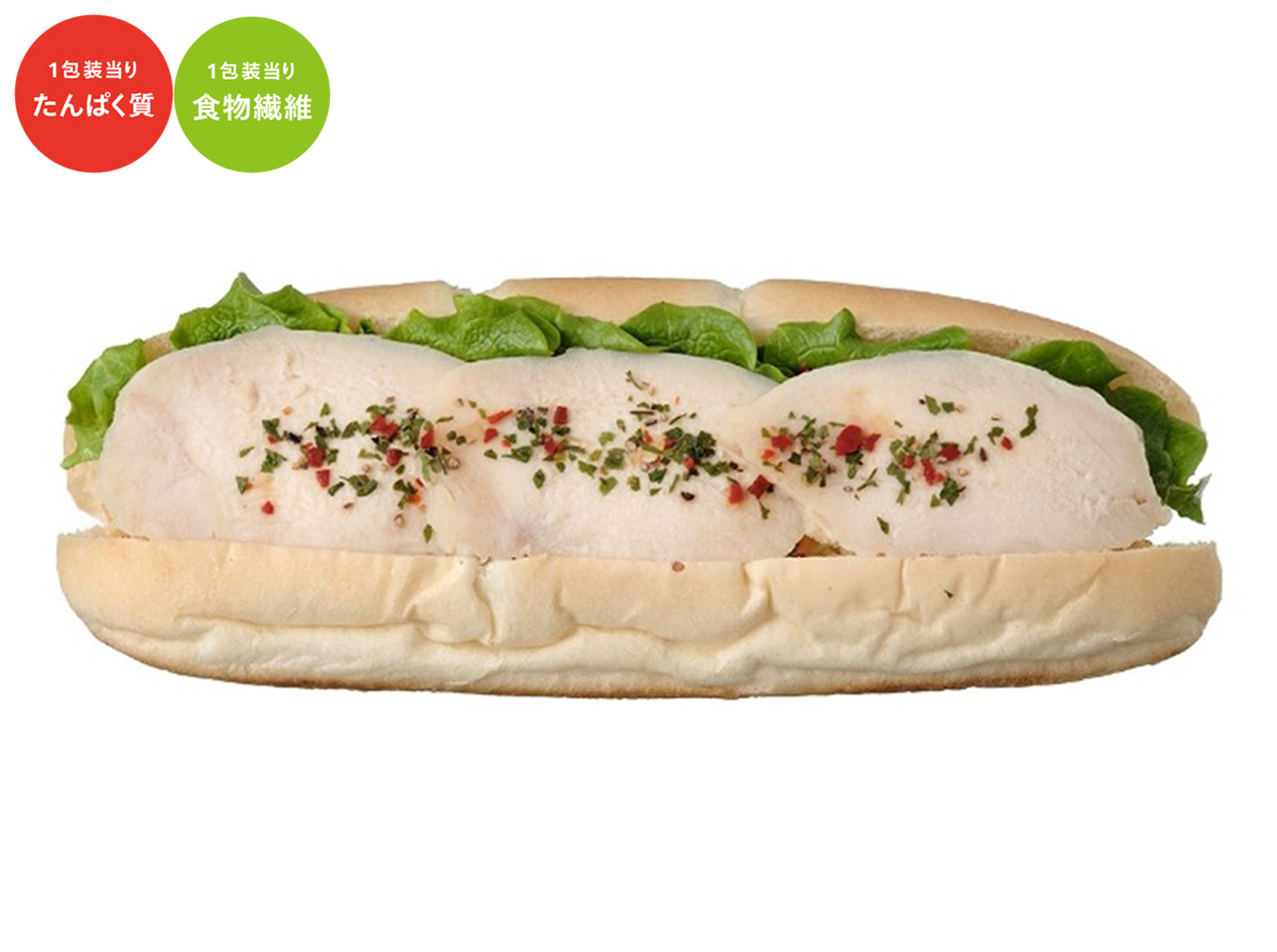 ロールパンに高タンパクなサラダチキンとキャロットを組み合わせた商品です。