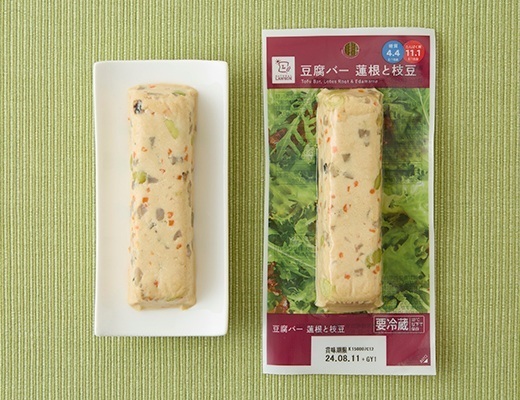 蓮根と枝豆の食感を楽しめる豆腐バー。