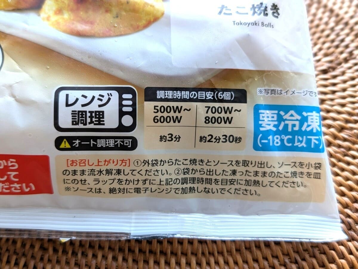 作るときは、中に入っているたこ焼きをお皿に移して、ラップをかけずに500wで約3分温めるだけ。とっても簡単ですね!