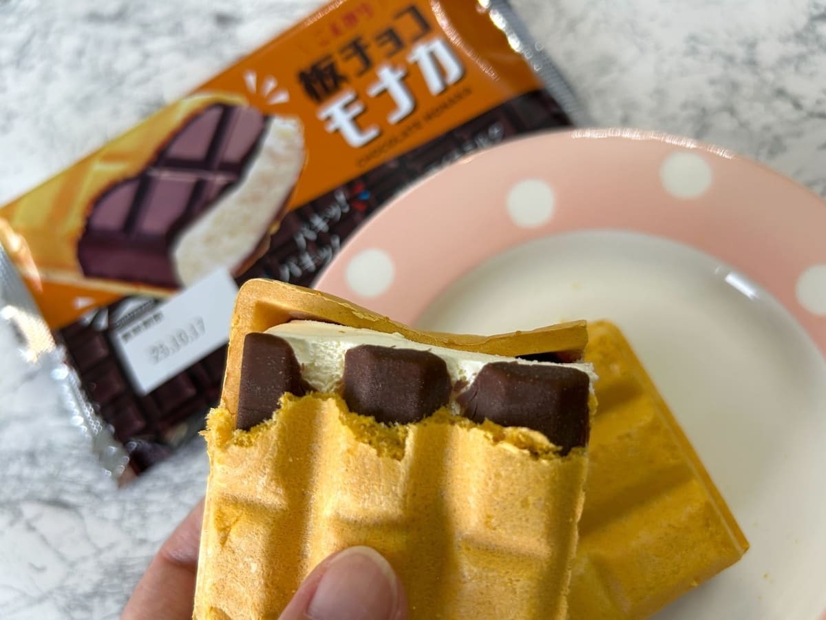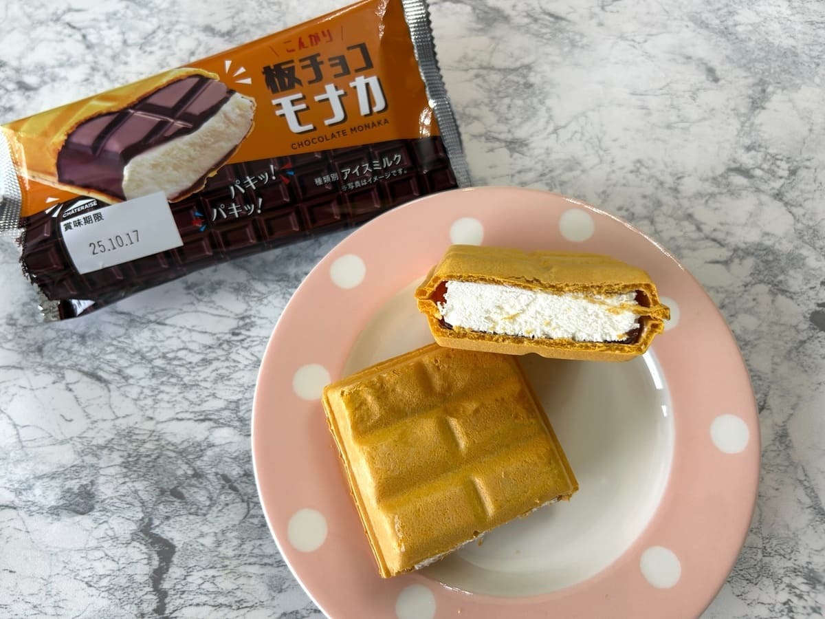 ただのモナカアイスではなく、板チョコが入っているので食感も楽しめるそう。