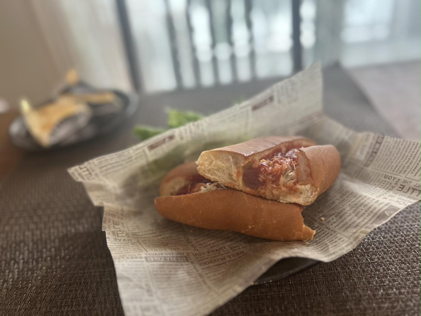 108円でちゃんとソーセージまで入ったホットドッグがいただけるなんてコスパ良すぎですよね。