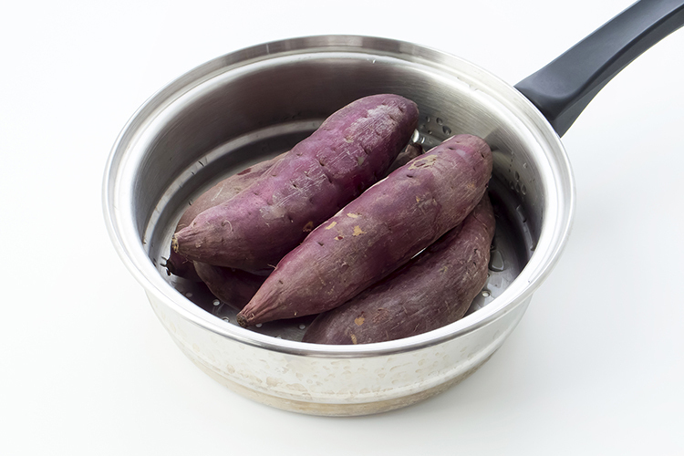 水を使って茹でる調理法。さつまいもが水分を吸うため、蒸すよりもさつまいもがしっとりとした仕上がりになります。