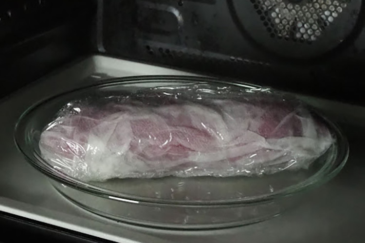 さつまいも(1本200g程度のもの)を濡らしたペーパータオルで包み、耐熱皿にのせます。ラップをかぶせ、600Wの電子レンジで2分加熱を。裏返してラップをかぶせ、さらに600Wの電子レンジで2分加熱しましょう。