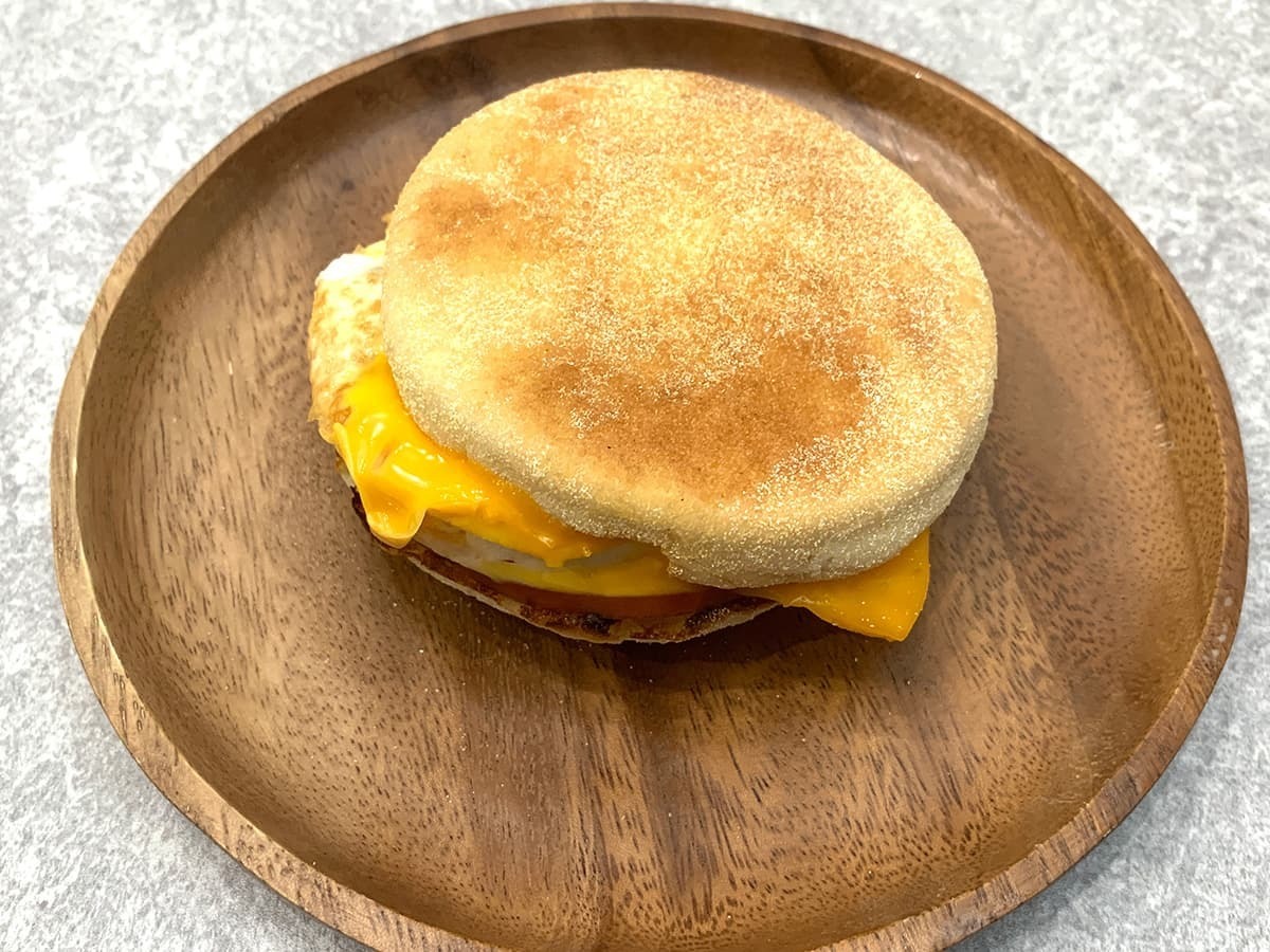 カナディアンベーコン、チーズ、たまごをサンドした「エッグマックマフィン」をご紹介します。