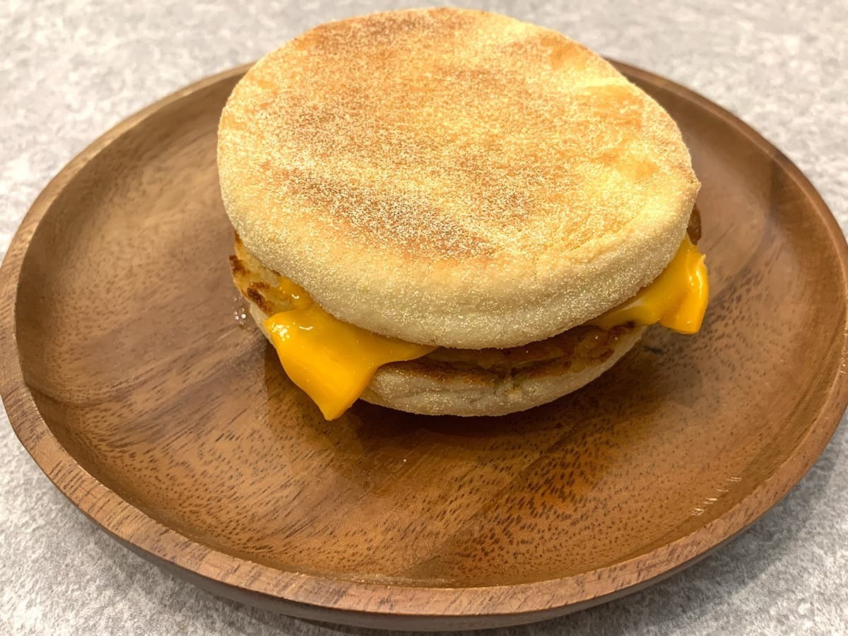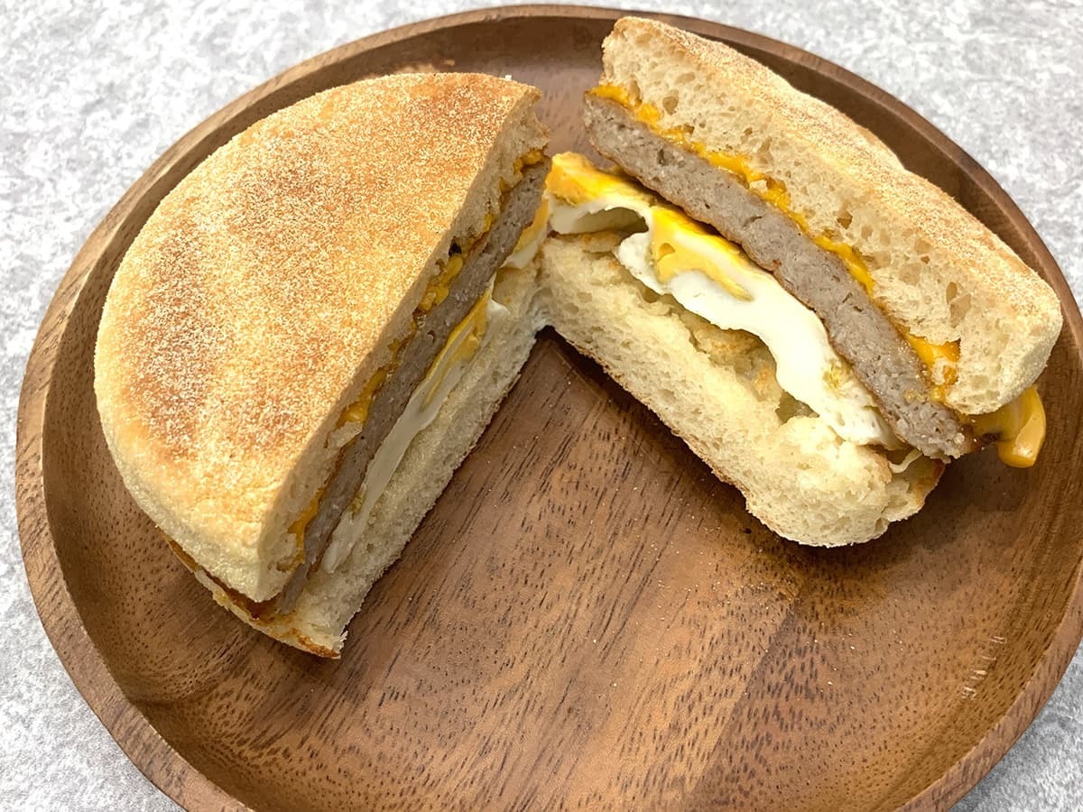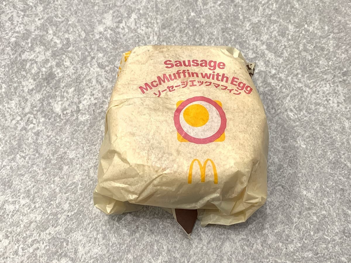 イングリッシュマフィンにソーセージパティ、たまご、チェダーチーズを挟んだ一品。「エッグマックマフィン」のベーコンがソーセージパティに変更されています。