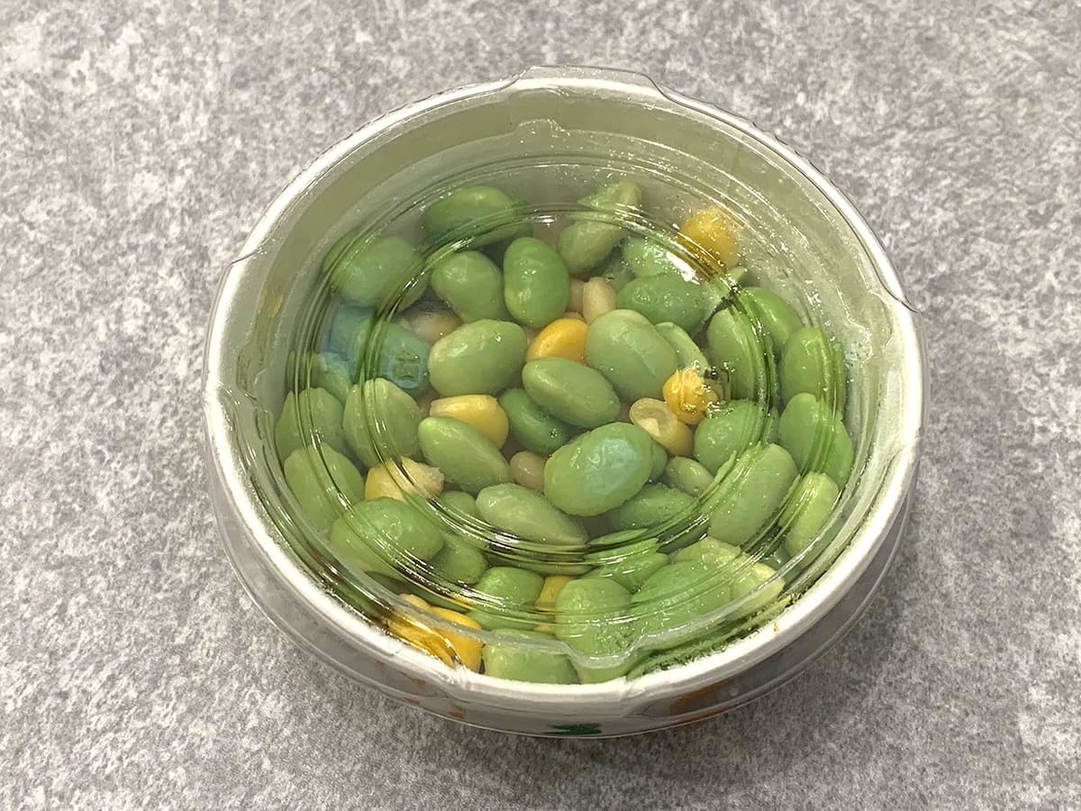 商品名の通り、枝豆とコーンをミックスした一品。枝豆の鮮やかな緑色とコーンの華やかな黄色のコントラストが美しいですよね♪