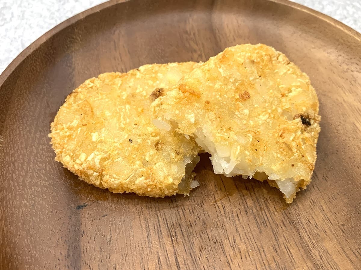中のポテトは粗めにカットされており、一口ごとにほぐれる食感も魅力的!もちろん、外のカリカリ感と中のホクホク感のコントラストも絶品ですよ♪