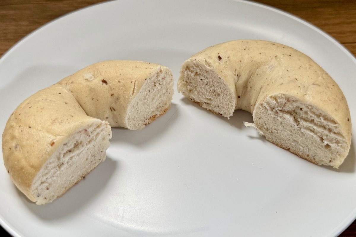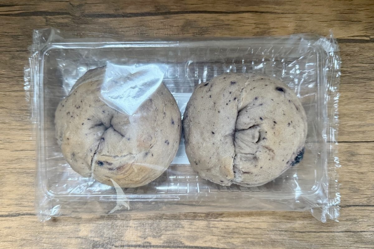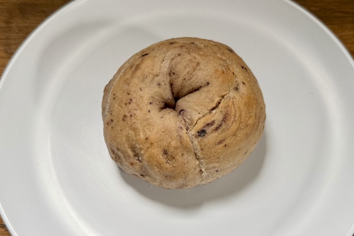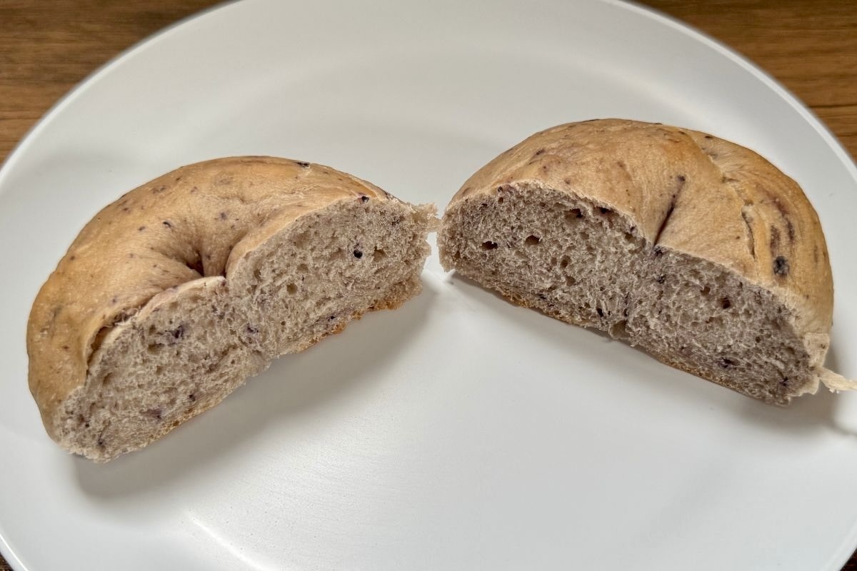 見た目は通常のベーグルと比べて、ブルーベリーを使用しているだけあって、うっすらと青紫色をしています。
