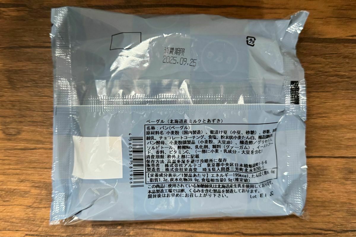 商品名:BAGEL & BAGEL 北海道産ミルクとあずきのベーグル