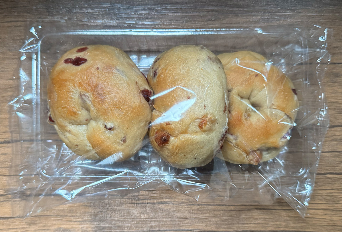丸々としたベーグルの表面に見える赤いクランベリーは、見た目の良いアクセントになっています。