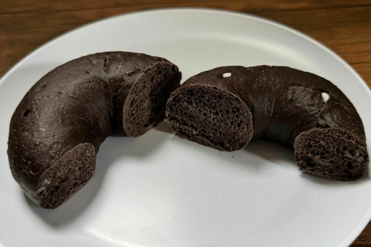 ビターなブラックココアの生地と中に練り込んだミルキーなホワイトチョコチップの相性が抜群なベーグルです。