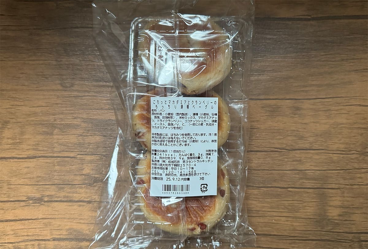 商品名:成城石井自家製 ごろっとマカダミアとクランベリーのもっちり湯種ベーグル