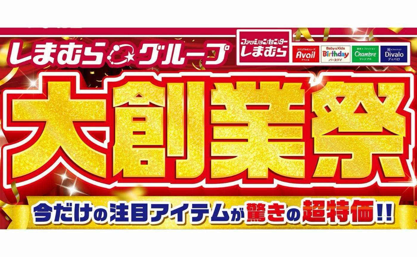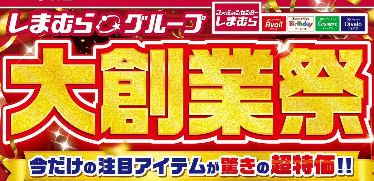 ファッションセンターしまむらをはじめ、カジュアル&シューズのアベイル、ベビー・子供用品のバースデイ、雑貨&ファッションのシャンブル、靴&ファッションのディバロで、お買い得なセールが実施されます。
