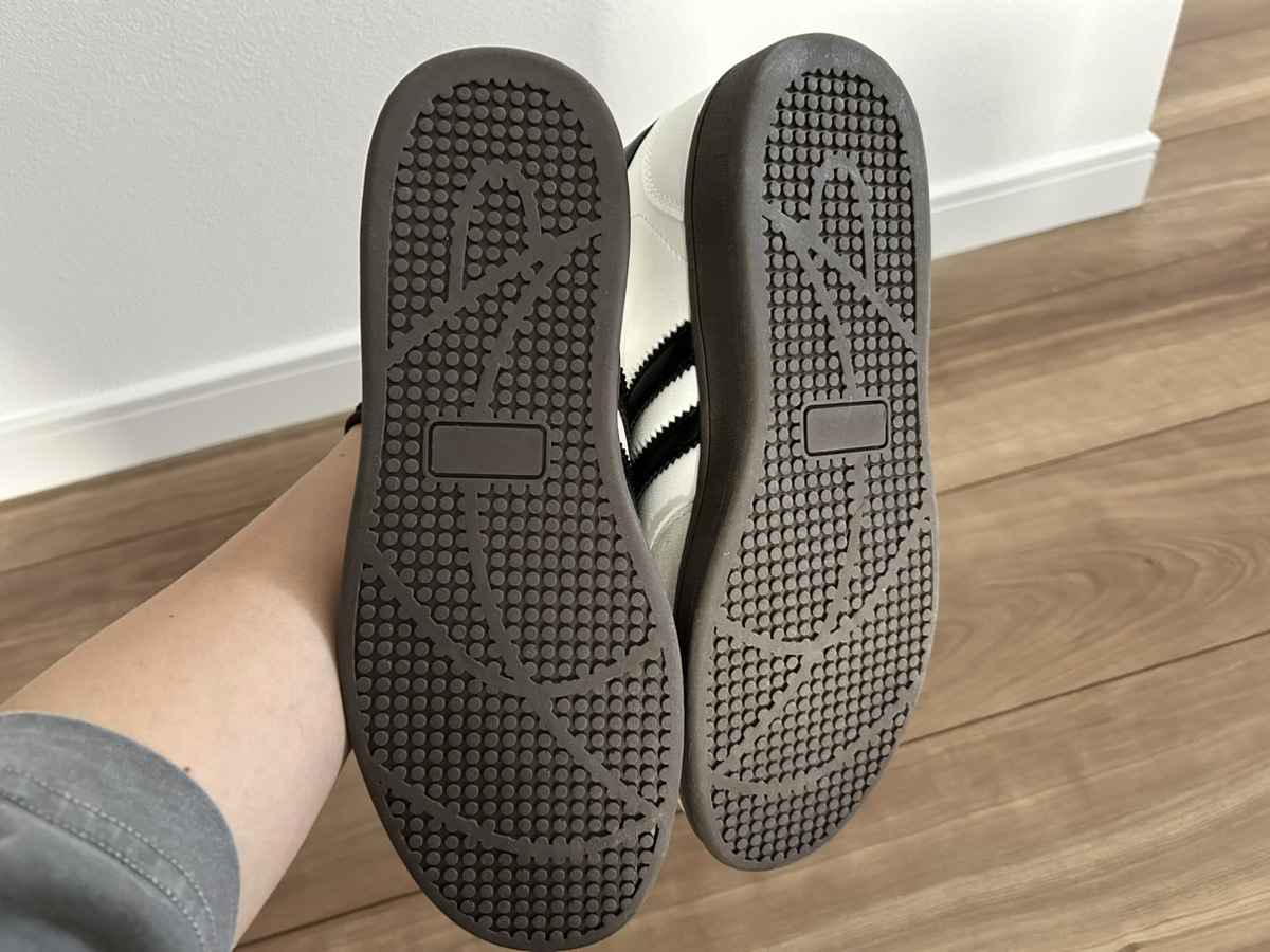 機能面では、底面がフラットなドットパターンで、激しい運動には向きませんが、タウンユースには十分。