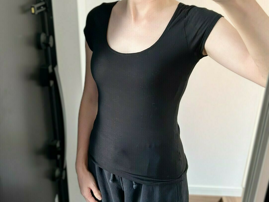しっかりとした厚みがあり、1,000円台とは思えない品質です。首周りと手首の程よく肉厚なリブも、高級感を演出するポイント。