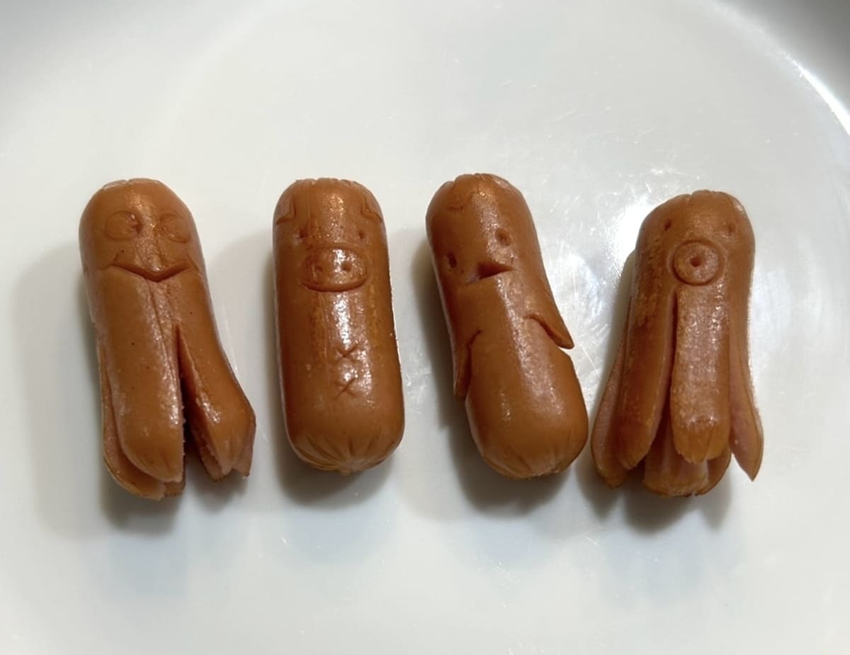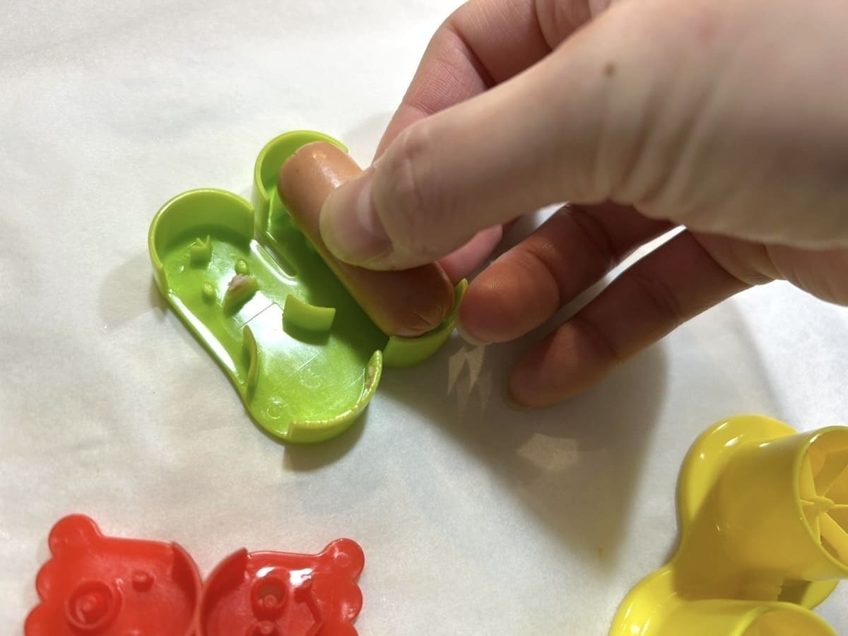 ポイントは、皮なしか薄皮のウインナーを使用すること。特に皮なしだと型がきれいにつきますよ。