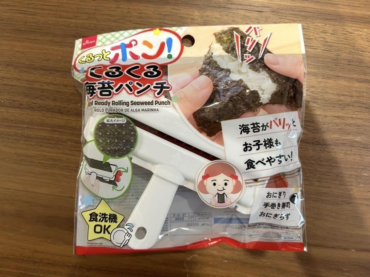 海苔を巻いたおにぎりは子どもに人気ですが、海苔が噛みきれず、おにぎりが崩れてしまうという悩みを解決してくれるのが「くるっとポン くるくる海苔パンチ」。