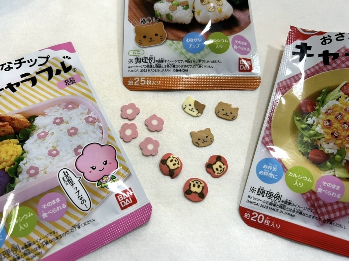 「デコ弁は不器用だから難しい」「彩りが足りない」という時に大活躍するのが、トッピング用乾燥チップの「キャラフル」です。