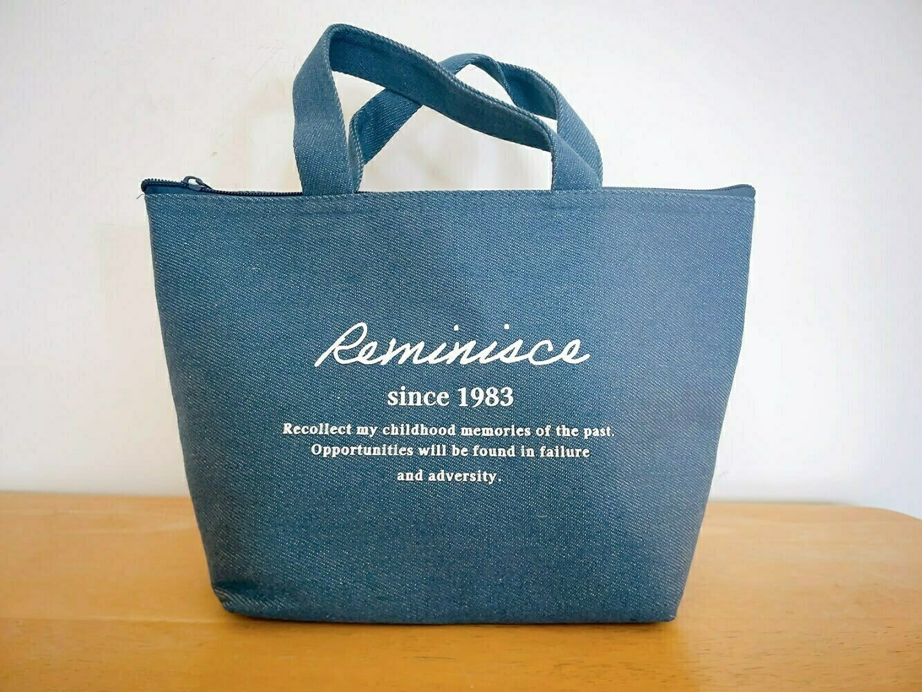 カジュアルなデニム調の生地にロゴが入った、おしゃれで可愛らしい印象の「デニム風舟形ランチバッグ」は、お弁当の持ち運びに欠かせない保冷機能付きバッグです。