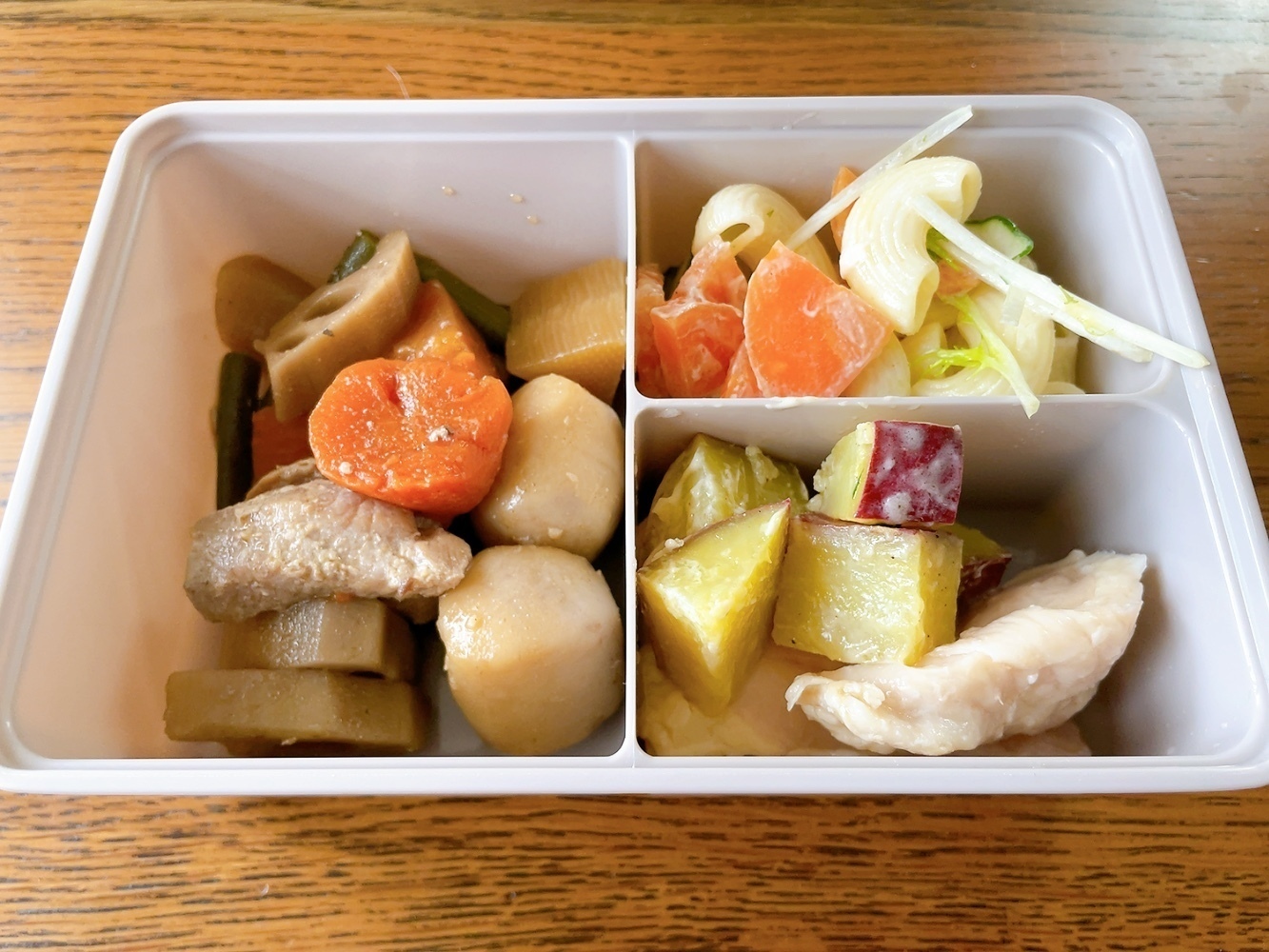 夕飯のおかずの残りを詰めてみるとこんな感じに。