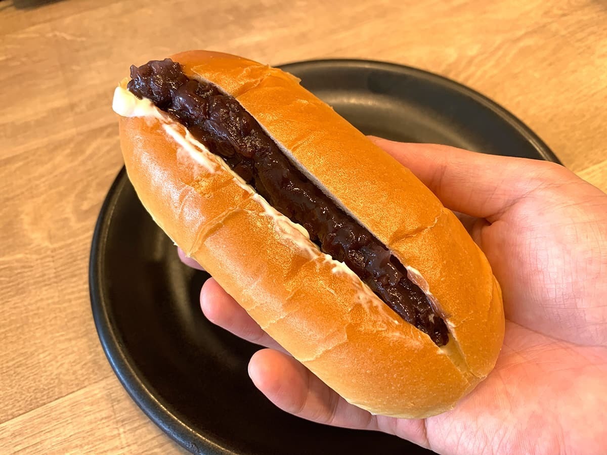 温かい状態で運ばれてきたコッペパンを実食してみたところ、あんこの主張がやや強め。上品な甘さのあんこがコッペパンの中にたっぷり入っていました♪