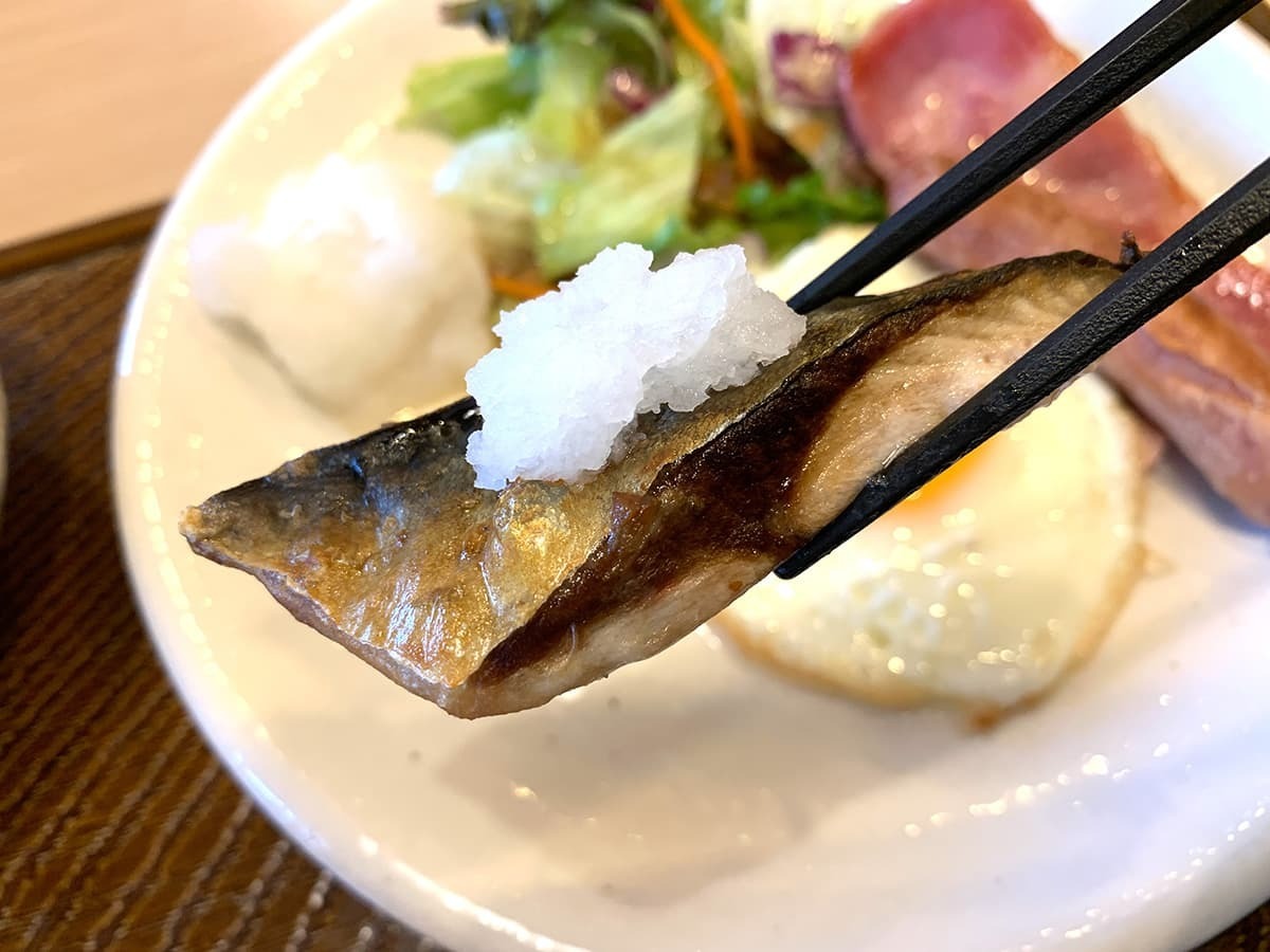 塩味は控えめで、朝から食べるにはほど良い塩加減でした♪大根おろしと一緒に食べると、さらにあっさり食べられて美味しいですよ。