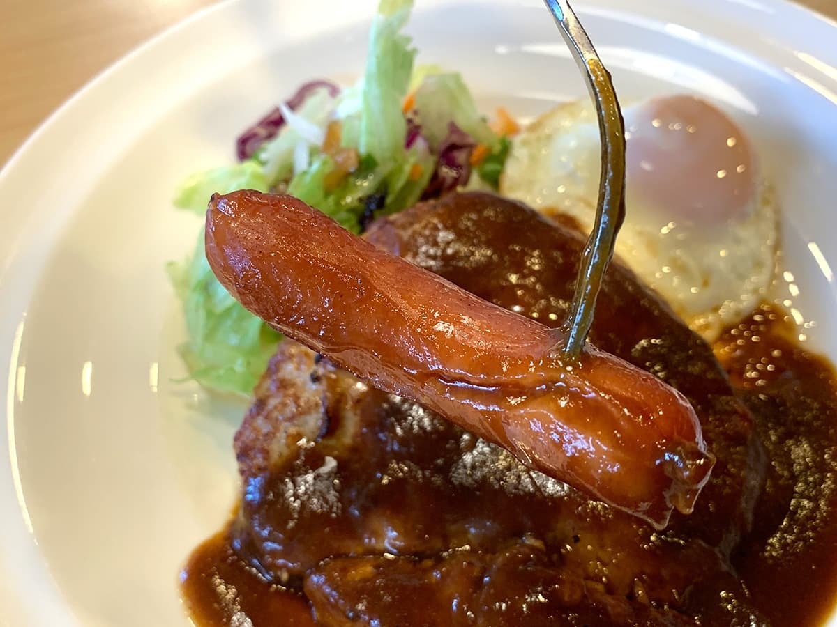 ソーセージはパリッとして美味しく、安っぽさは無し!ハンバーグと同様、どんどん口へ運びたくなる味わいです!