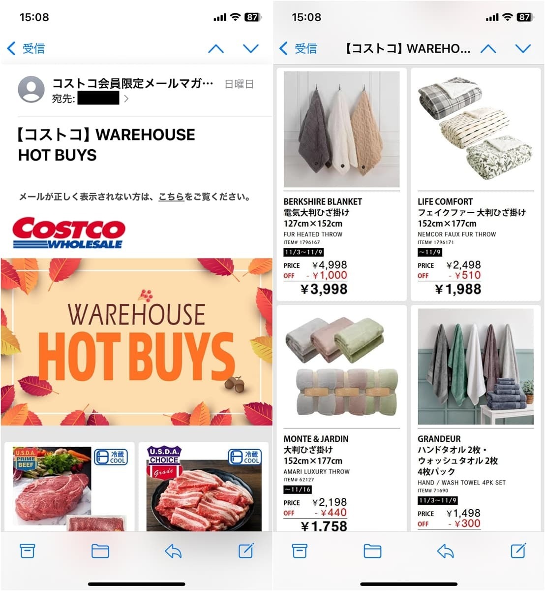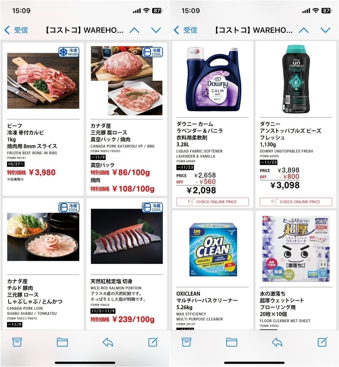 コストコのメルマガでは割引情報が配信されていますが、意外にも商品量は多くお得な情報が満載です!
