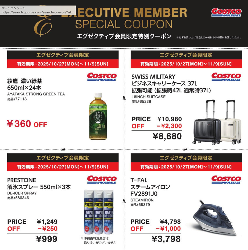 コストコのクーポン概要(〜11月9日)