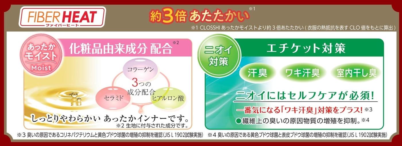 CLOSSHI FIBER HEAT「あったかモイスト」インナーと比較して“約3倍”の保温力※を実現!