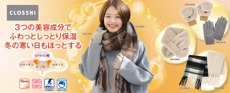・保湿 :美容成分を重視した保湿処理がされており、冬季の寒さへの対策だけでなく乾燥からも守ります。