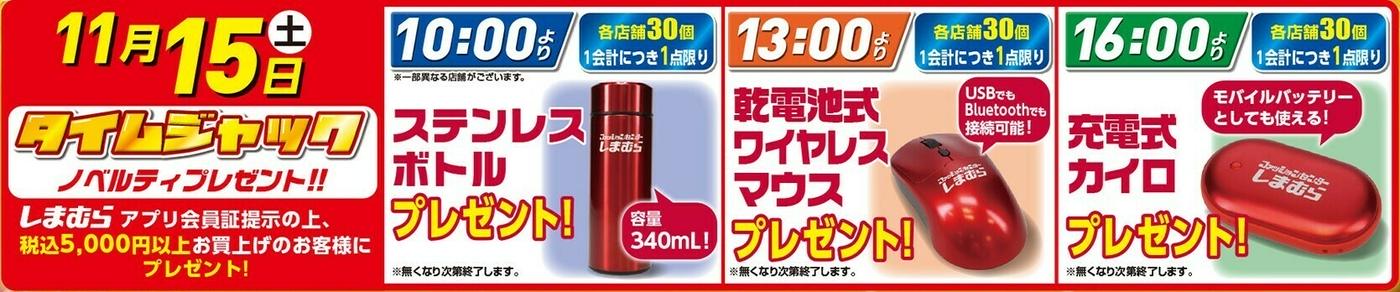 しまむらの「超サプライズセール」は、当日は11月15日15日(土)10:00~ですが、前日11月14日(金)18:00~もタイムセールが開催されます!